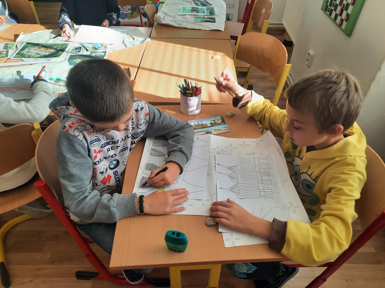 V týdnu od 30.10. se děti vydaly poznávat další kraj České republiky, tentokrát Středočeský. Pomocí fotografií a pohledů poznávaly památky a zajímavá místa, která pak děti kreslily a skládaly ze stavebnic.
