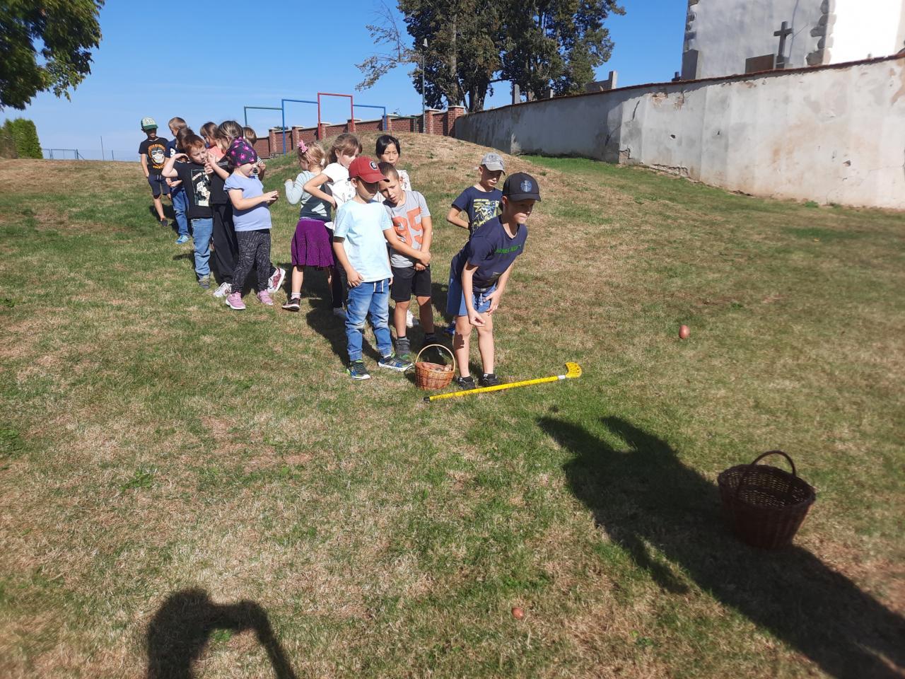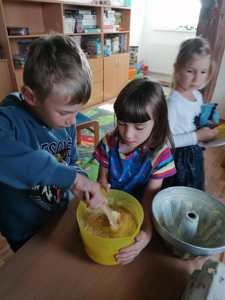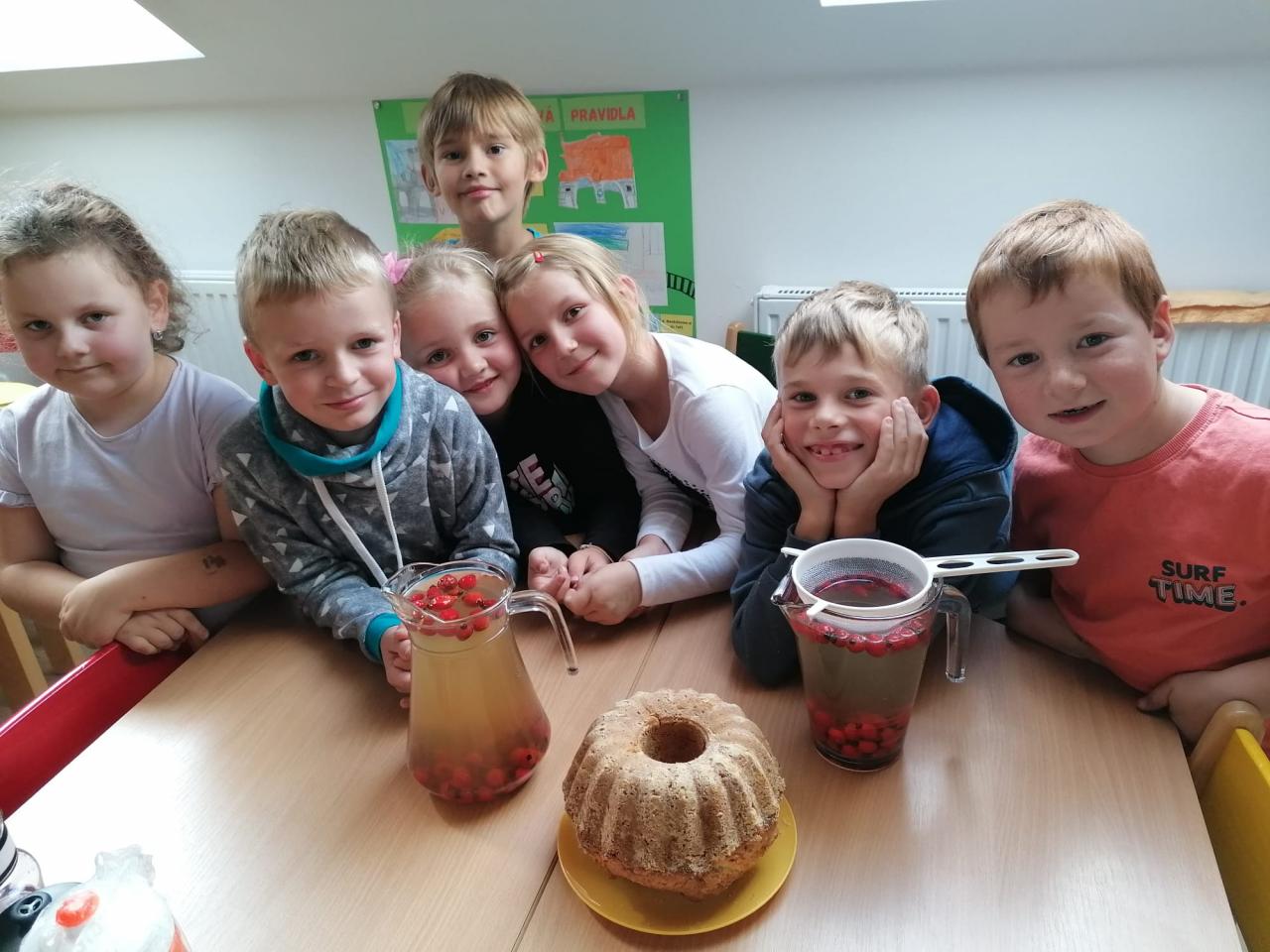 Děti si poskládaly ovoce, které sklízíme v tomto období, nakreslily si skřítka Podzimníčka a podzimní stromy, vyrobily slunečnice z papíru. Také si natrhaly šípky na čaj a k tomu si upekly vynikající bábovku, na které si společně pochutnaly na zahradě. Také si zahrály ořechové bingo, vyrobily lodičky z přírodnin a hlavně užívaly slunečné dny venku. V úterý 3. 10. si zasoutěžily s bramborami na Bramboriádě. Všichni si tento teplý podzim užívají.