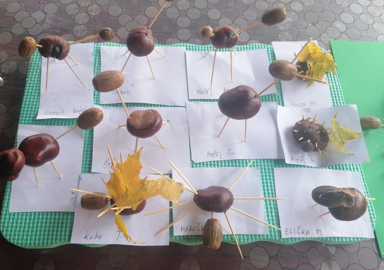 Vyráběly skřítky a zvířátka z kaštanů, žaludů a listí. Loupaly a ochutnávaly jedlé kaštany. Hrabaly listí na zahradě a vytvořily spoustu krásných obrázků.