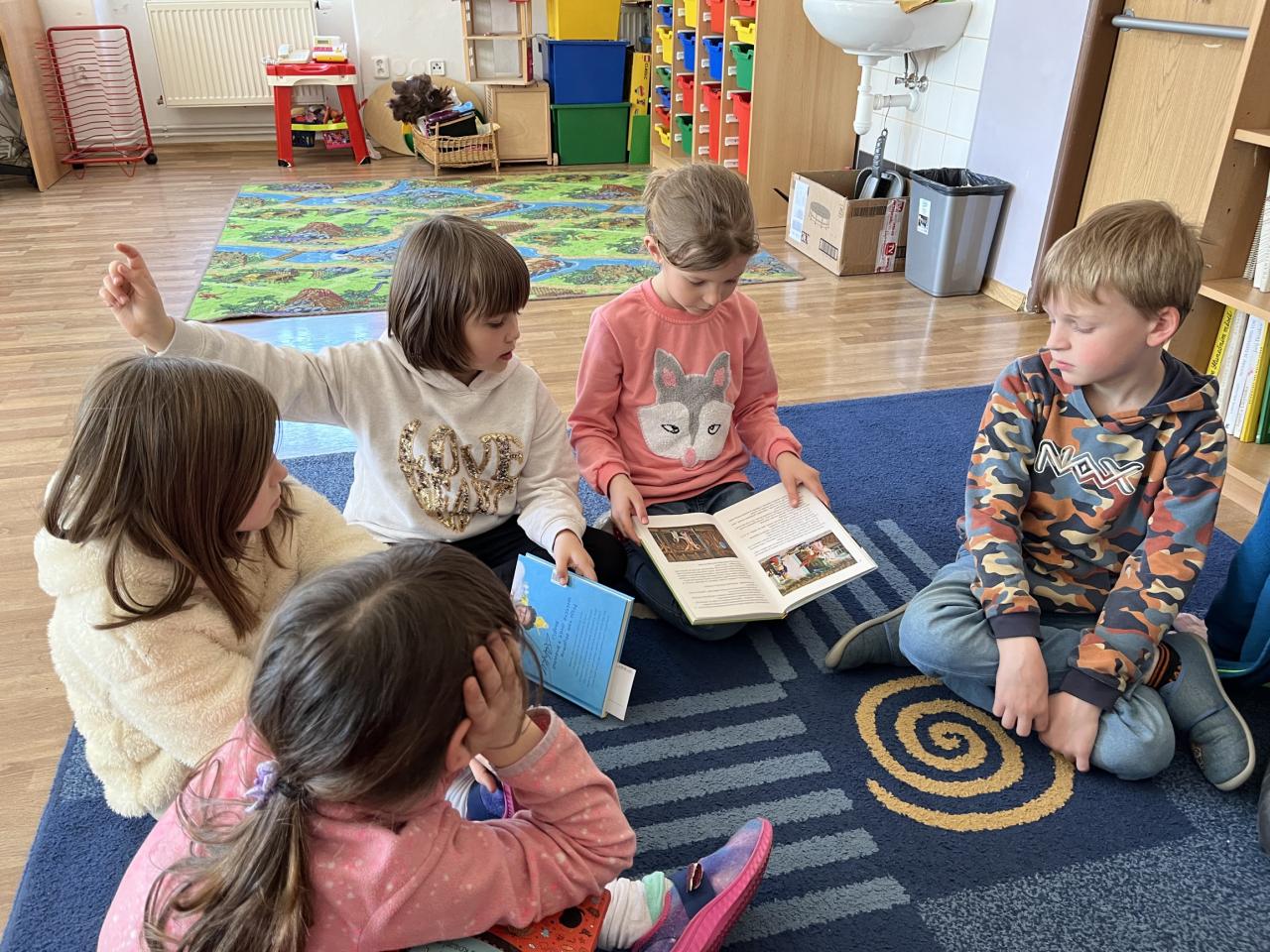 Děti si povídaly o svých oblíbených pohádkových postavách a příbězích, které je nejvíce zaujaly. Vyzkoušely si také roli spisovatele – vymýšlely vlastní pohádky a tvořily obálky ke svým knížkám. I když hotové knihy ve fotogalerii neuvidíte, můžete nahlédnout do atmosféry tvoření a společného sdílení pohádkového světa.