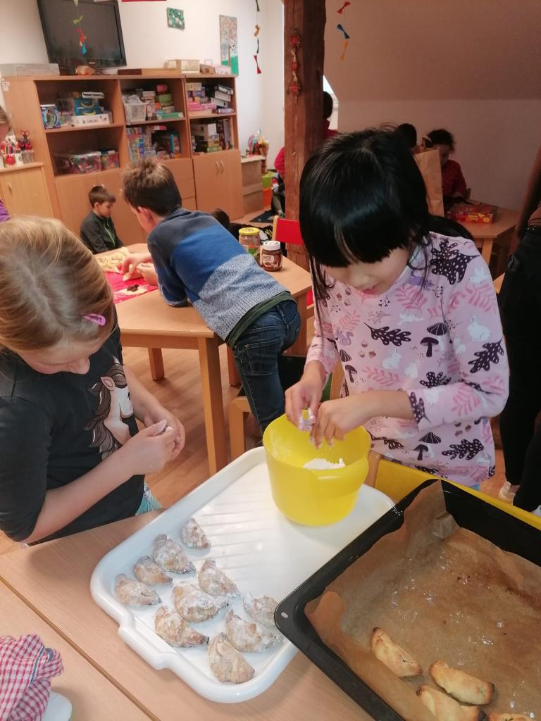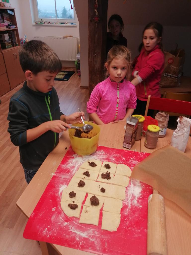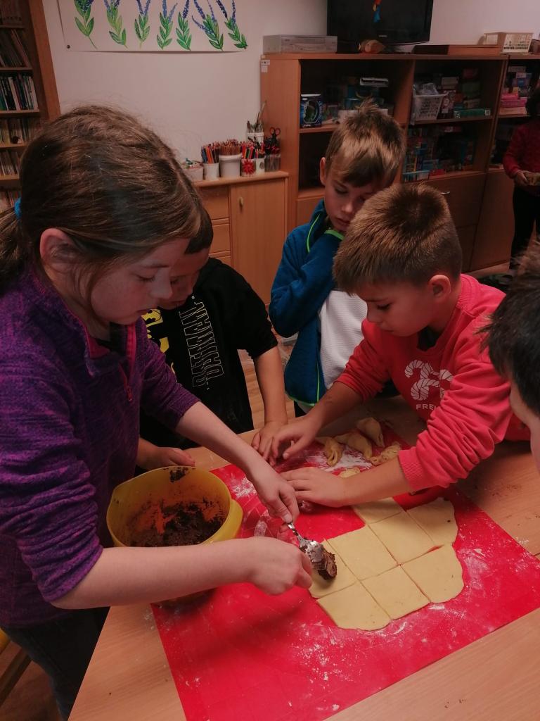 Upekly si svatomartinské rohlíčky s nádivkou z jedlých kaštanů, vyrobily husy ze sáčků a nakreslily Martinova koně. Když školu provoněly sladké rohlíčky, tak začal padat sníh a děti měly radost, že Martina přivolaly.