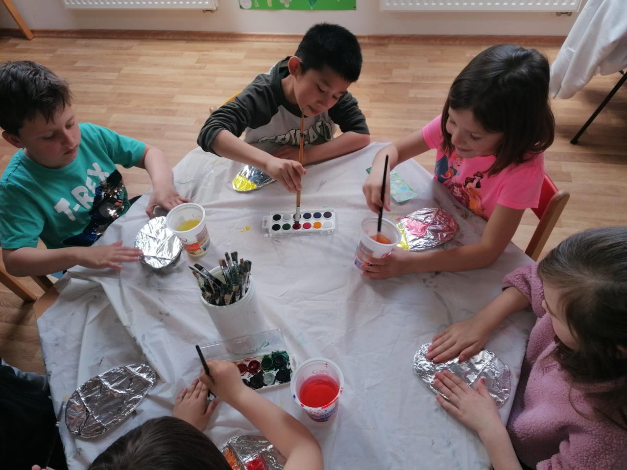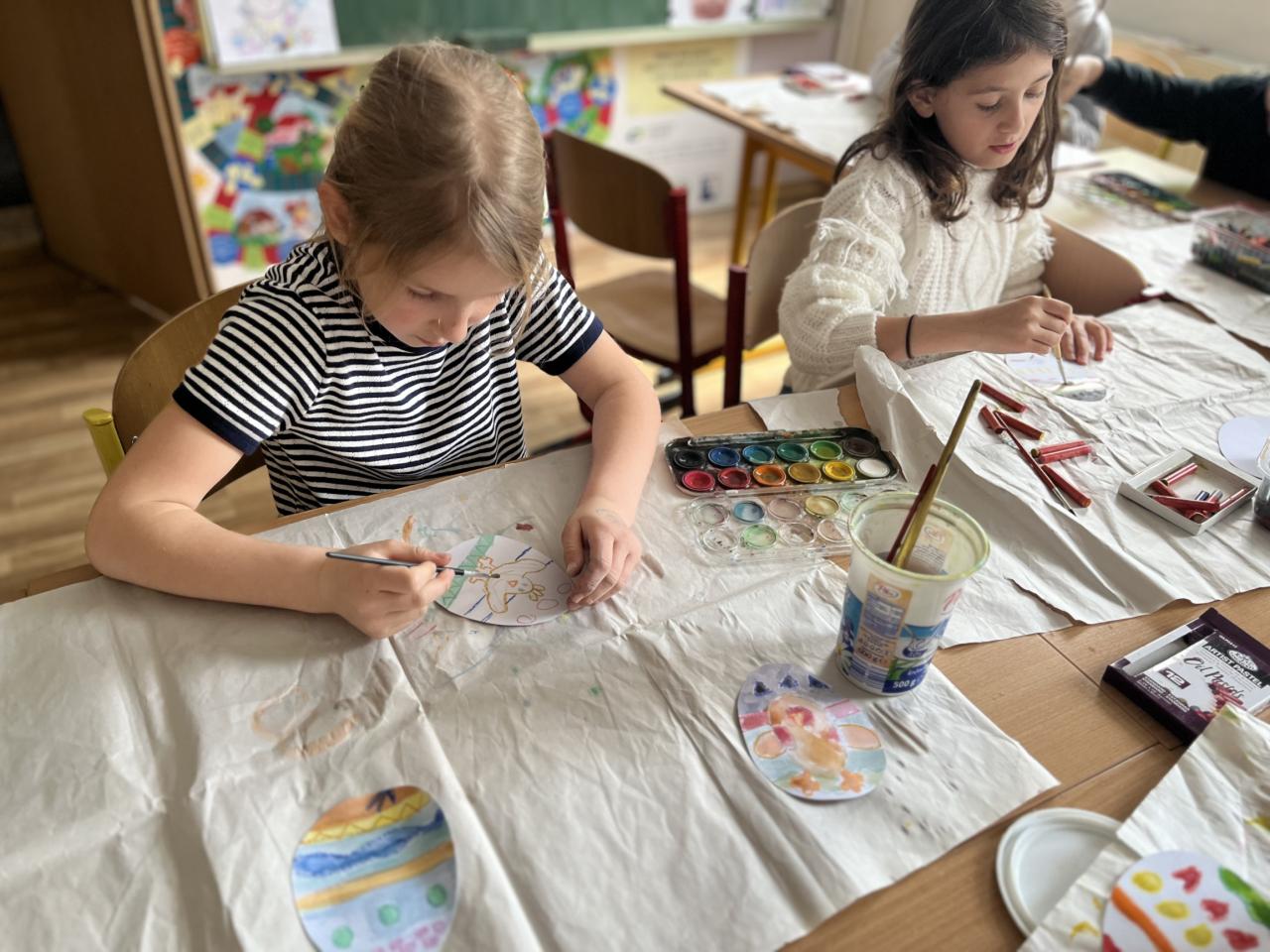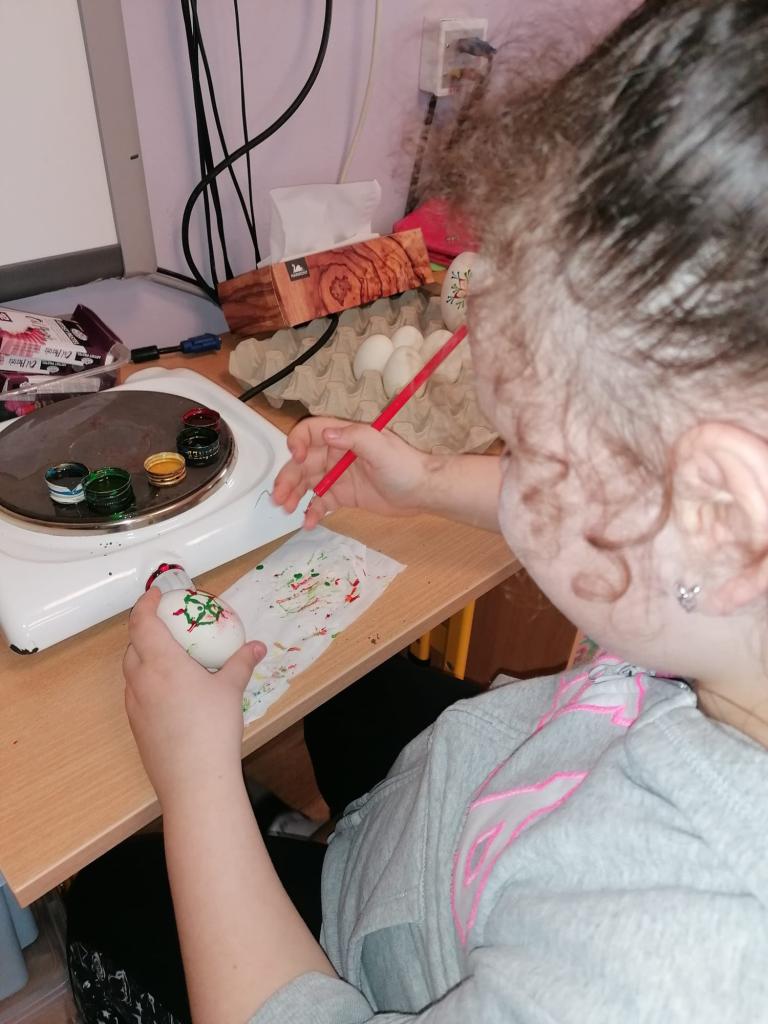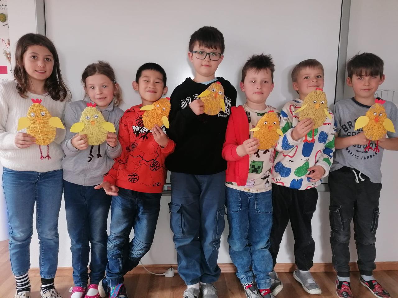 Děti vyráběly nejrůznější dekorace – kuřátka, zajíčky a malovaná vajíčka, dokonce i z těstovin! Společně jsme ozdobili strom před školou vlastnoručně vyrobenými vajíčky, které rozzářily celé okolí. Nechyběly ani jarní věnečky z pampelišek a tradiční pletení pomlázky. Všichni si vyzkoušeli velikonoční zvyky a přenesli se tak do atmosféry Velikonoc na venkově.