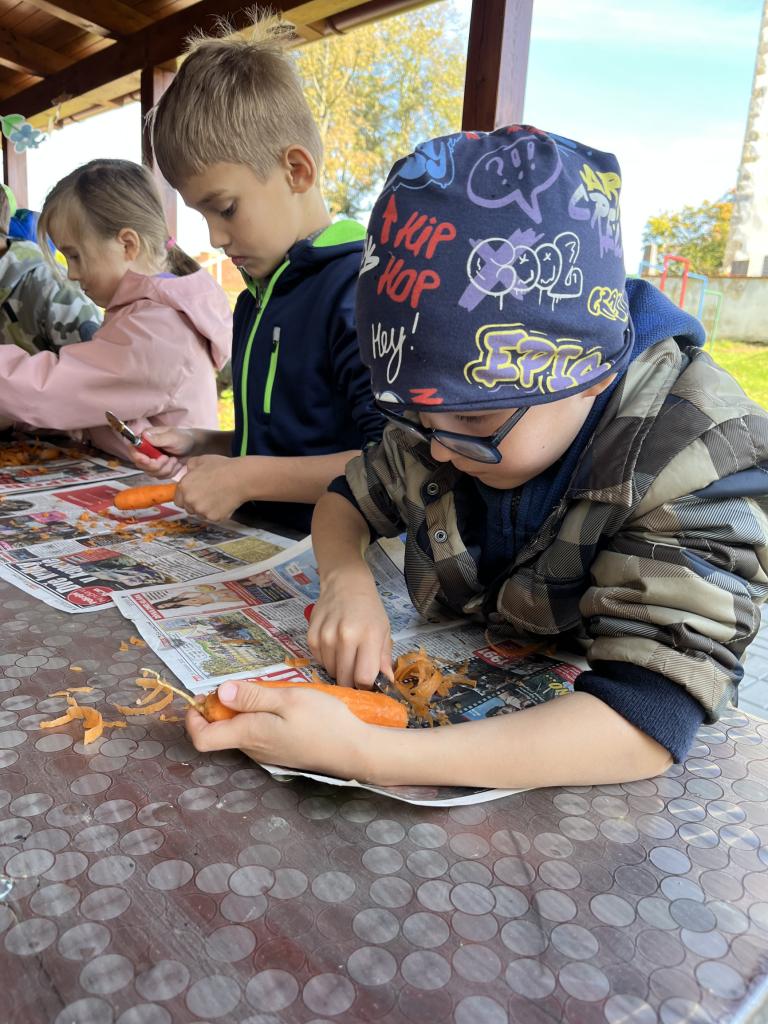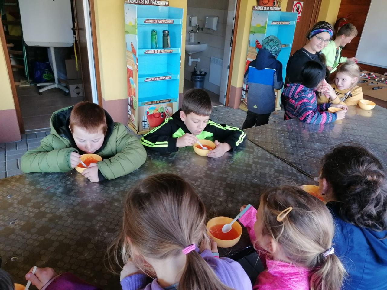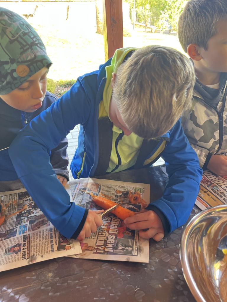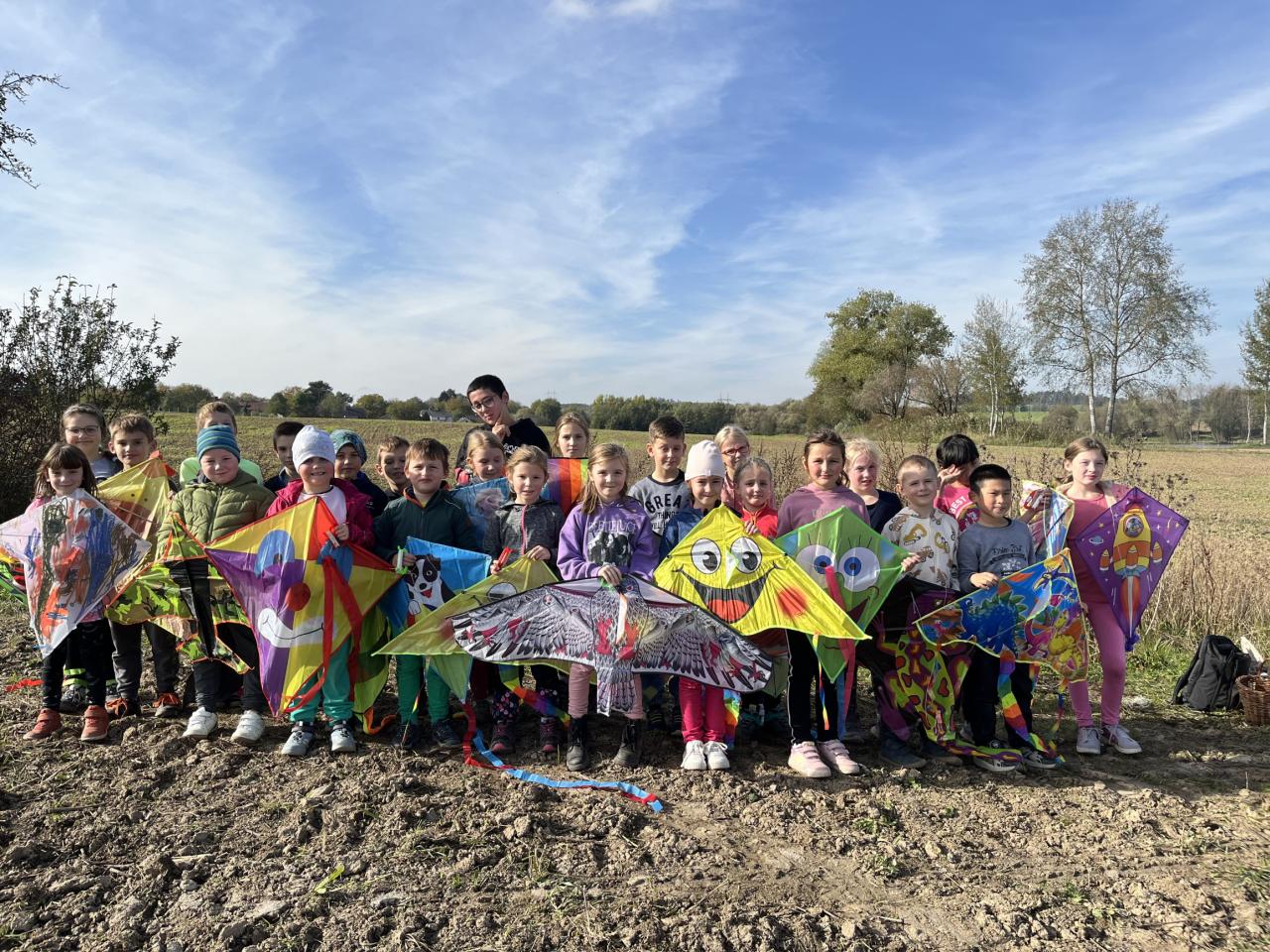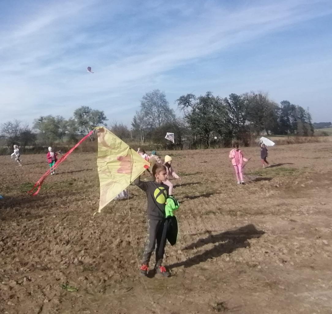 Děti poznávaly sílu větru, vyrobily si větrníky, papírové draky, snažily se sami svým dechcem odfouknout papírové listy a kuličky, namalovaly, jak vítr dokáže ohýbat stromy. Ze sklizené mrkve ze školní zahrady si udělaly mrkvový salát a celý týden zakončily Drakiádou. Počasí přálo, mírně foukalo, svítilo sluníčko a děti se proběhly se svými draky na čerstvém vzduchu. Kromě diplomů si na závěr vychutnaly teplé brambory, které se upekly v popelu mezi tím, co pouštěly draky.