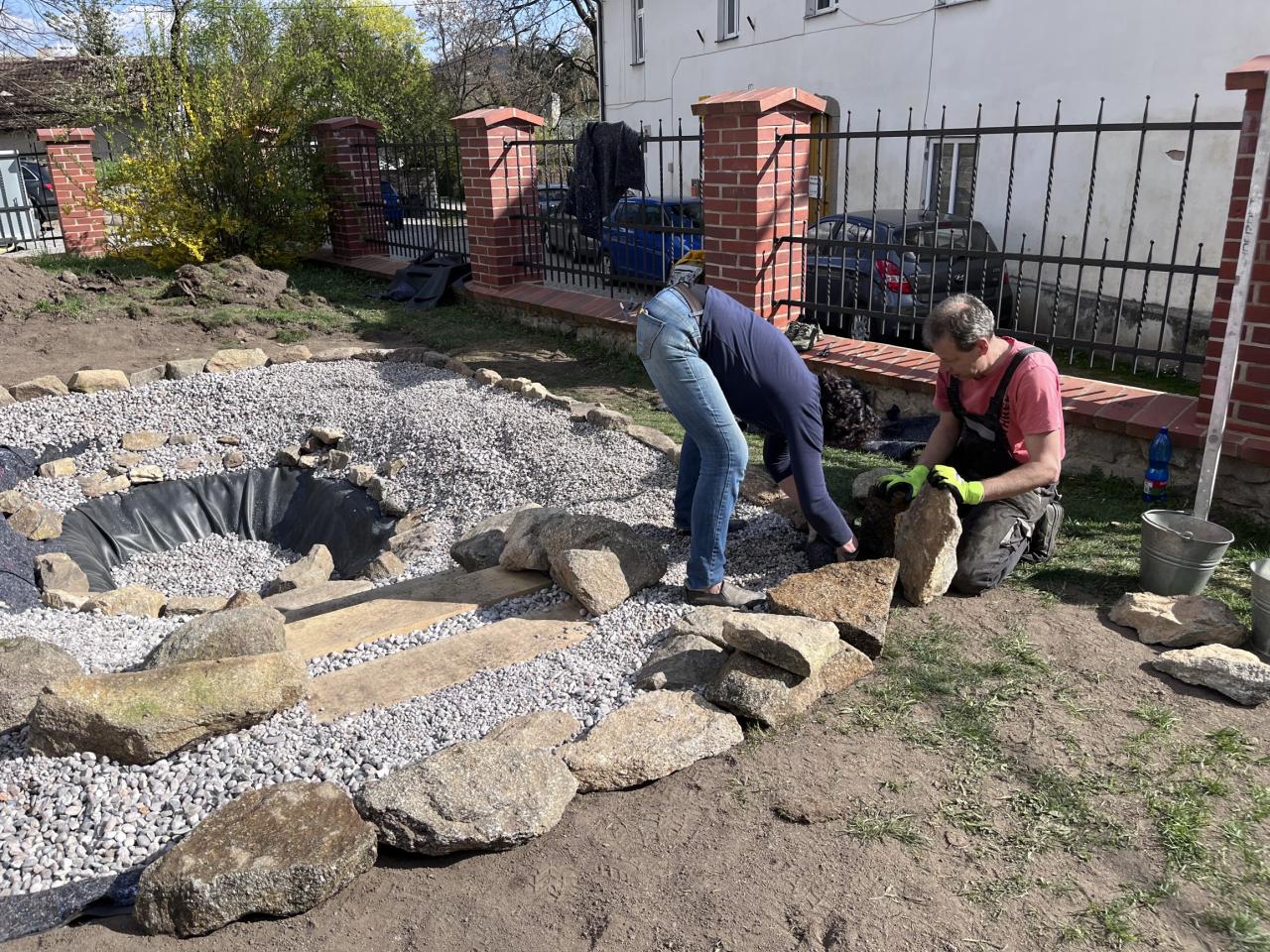 Na školní zahradě jsme začali s budováním jezírka, které si děti samy přály v rámci její proměny. Díky získané dotaci se tento nápad mohl stát skutečností a práce mohly začít.