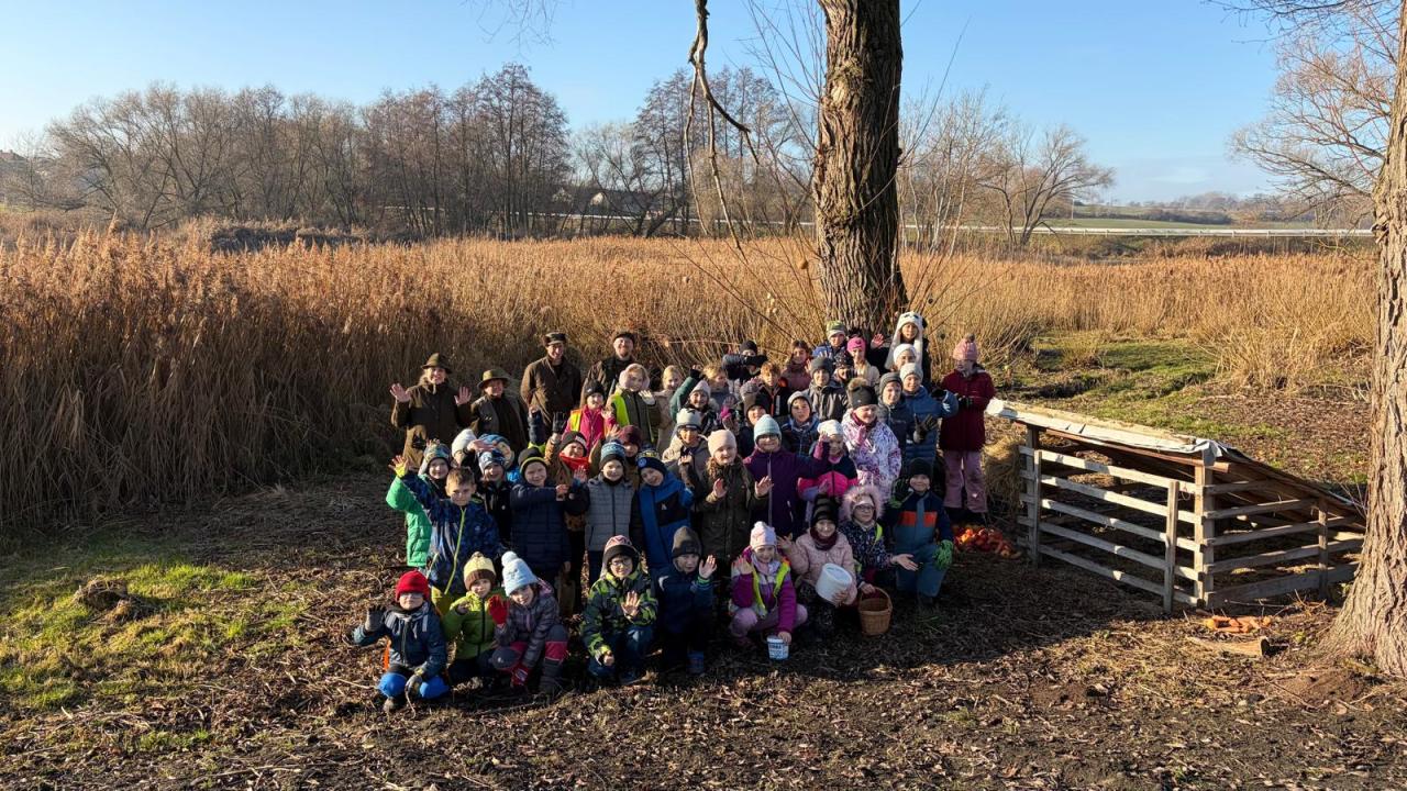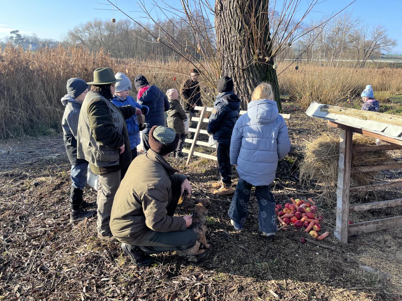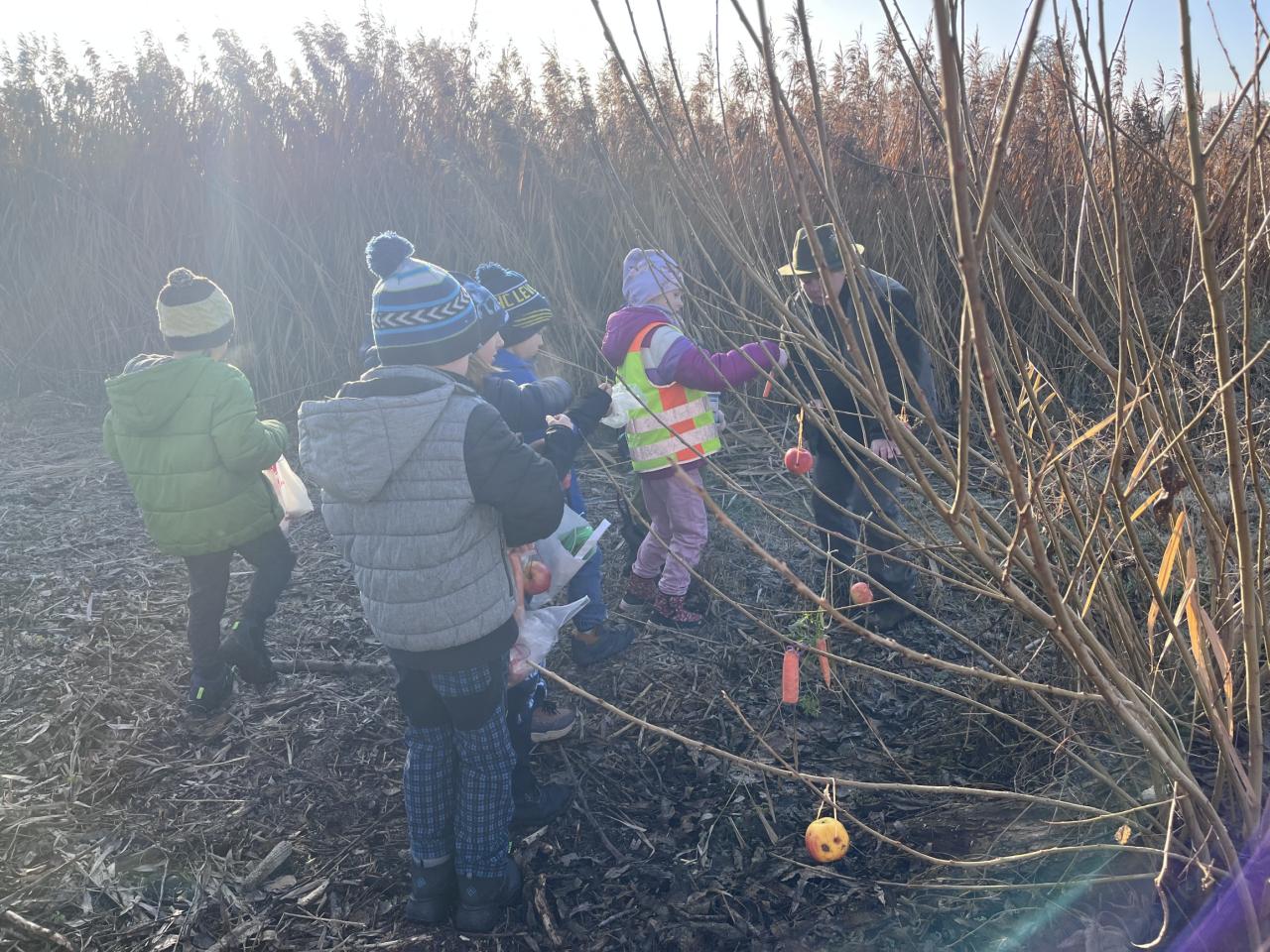 Děti se společně s Mysliveckým spolkem Hubert vydaly do lesa dát krmení lesním zvířátkům, aby jim udělaly pěkné Vánoce.