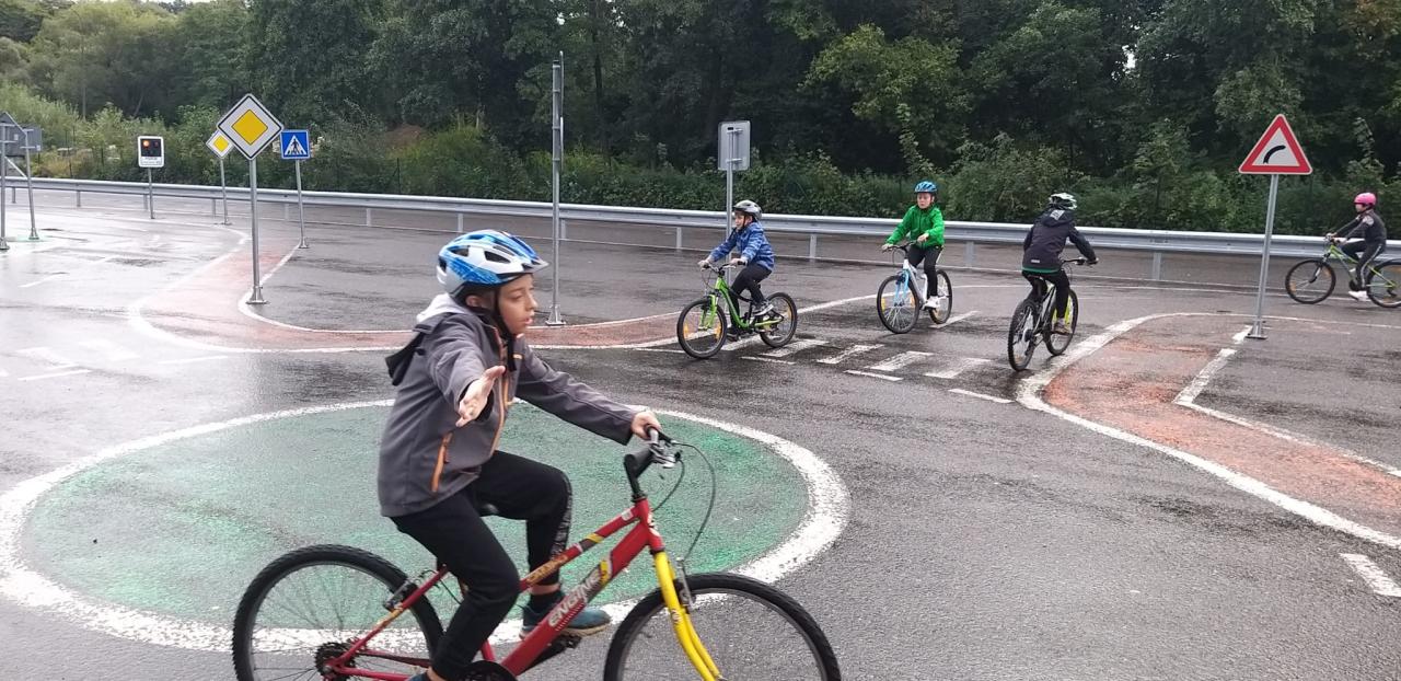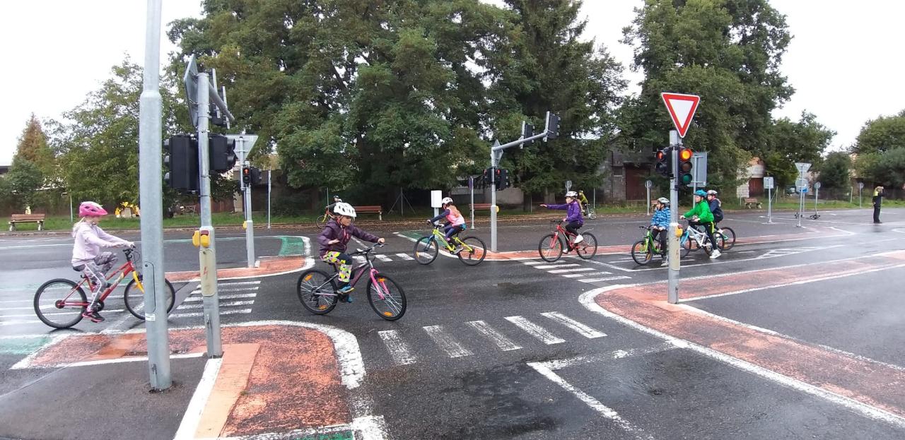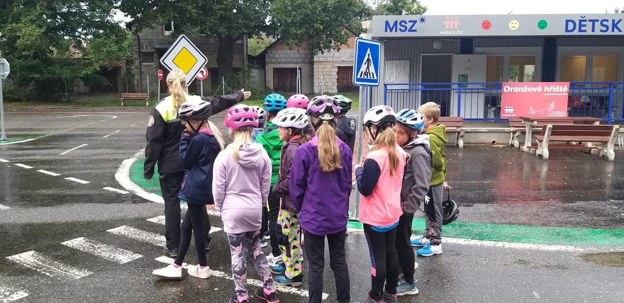 Děti si na dopravním hřišti procvičily pravidla silničního provozu při jízdě na kolech a koloběžkách.