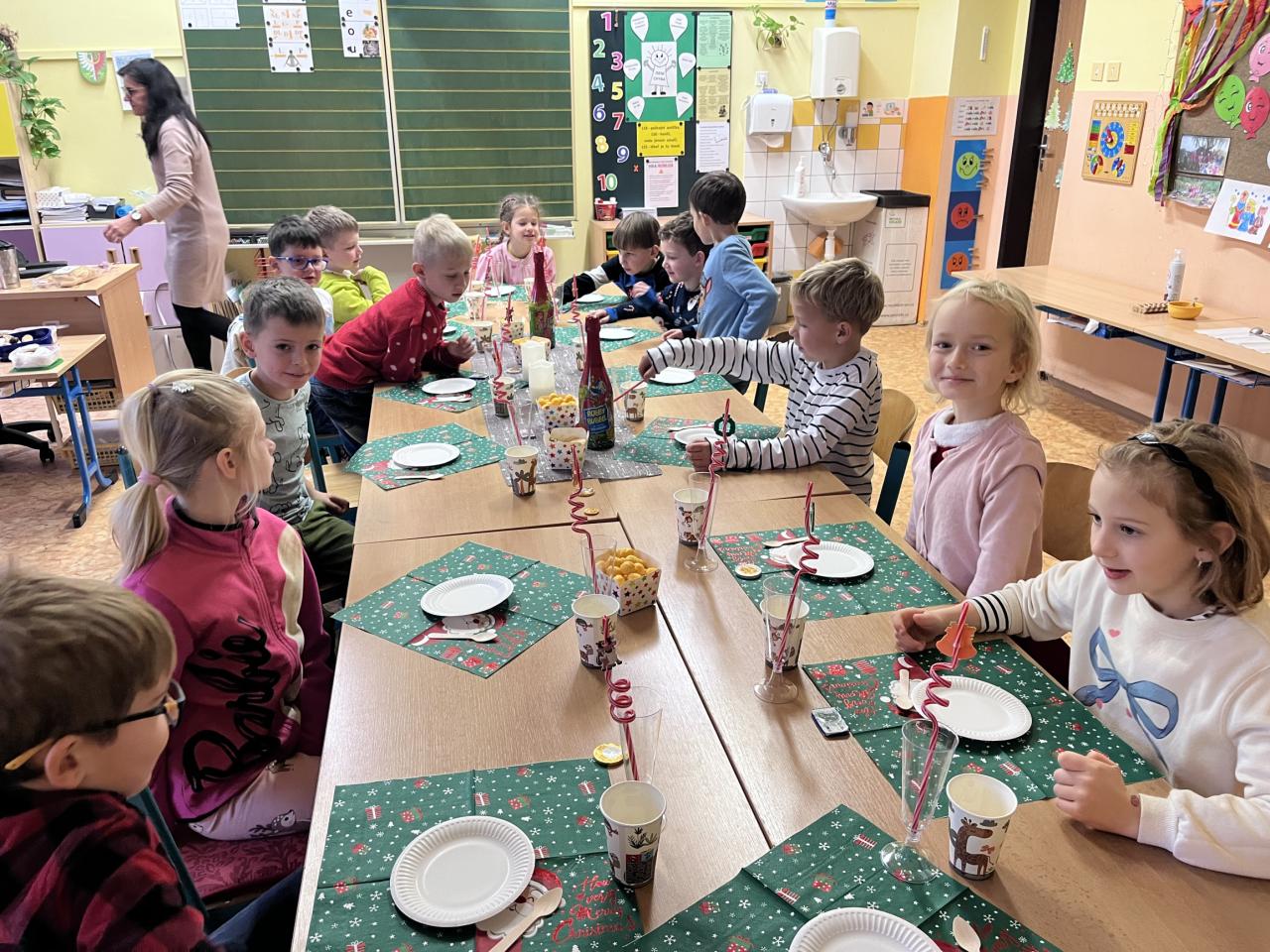 Ráno se děti sešly na společném setkání s Ježíškem v jedné třídě, kde každá třída dostala svůj společný dárek. Poté se děti rozešly do svých tříd, kde pokračovaly ve vlastním vánočním slavení, povídání, radosti z dárků a sváteční atmosféry