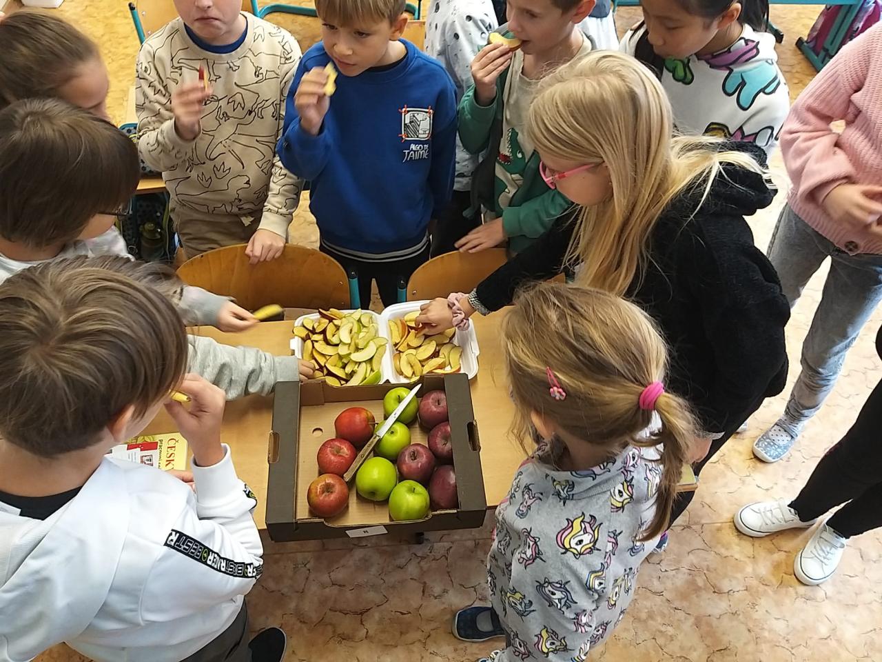 V rámci školního projektu si děti vyzkoušely ochutnávku tří druhů jablek.