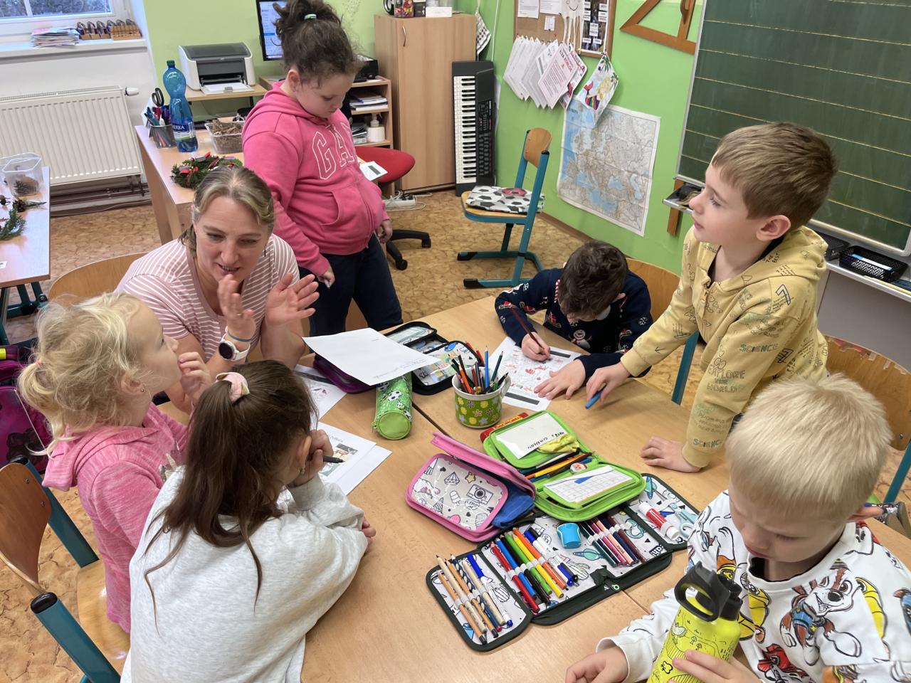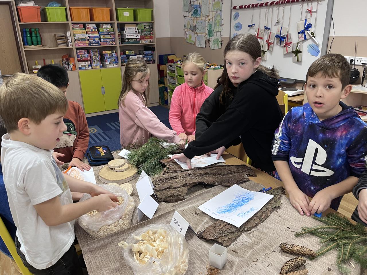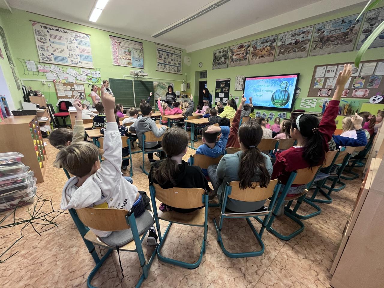 Čekaly je prezentace připravené učiteli, práce v týmech, zkoumání přírodnin i zamyšlení nad tím, jak se k lesu chovat – své myšlenky děti vyjádřily v „dopise pro les“. Nechyběla ani kreativní část v podobě výroby lesa z různých materiálů.