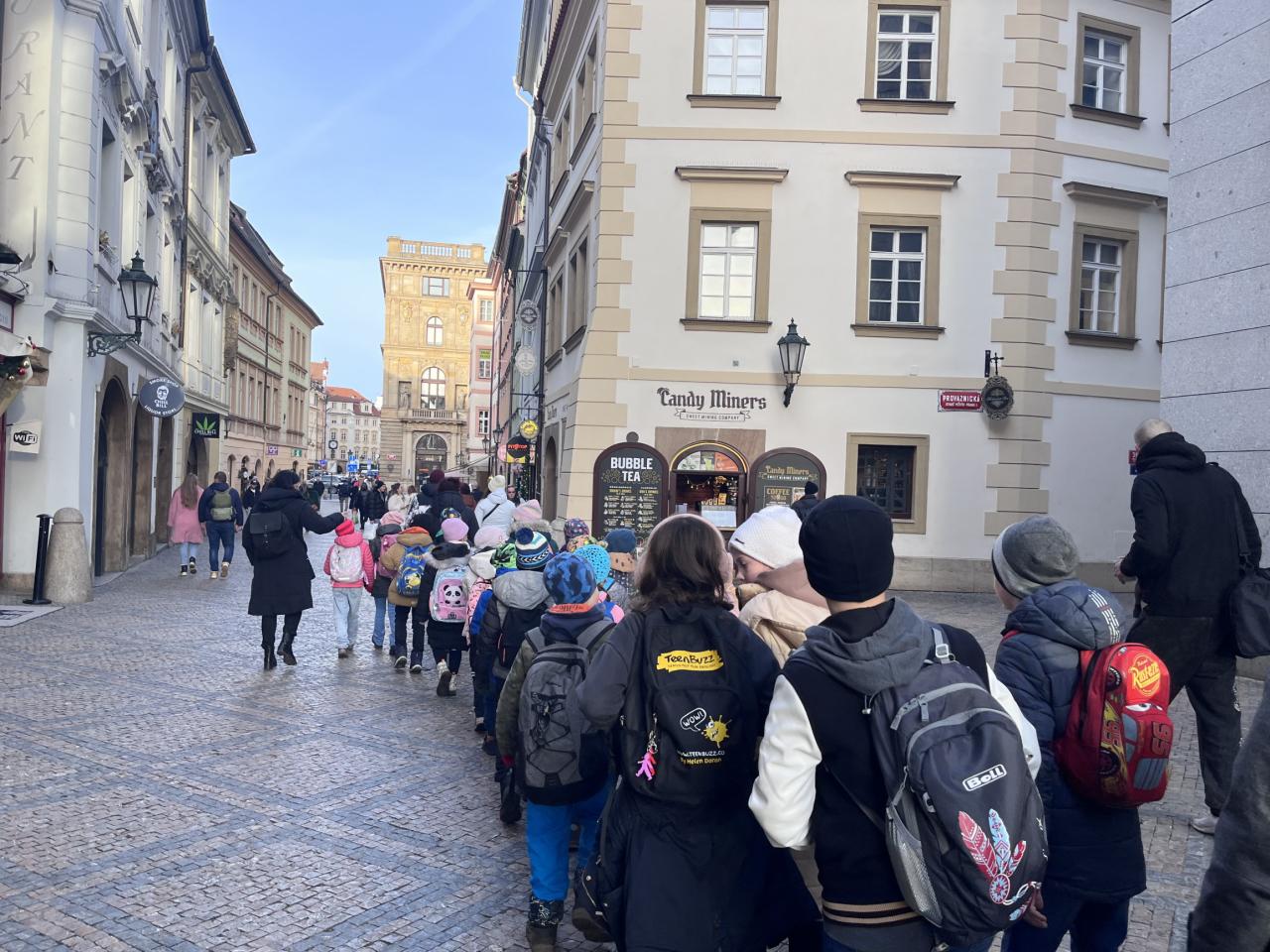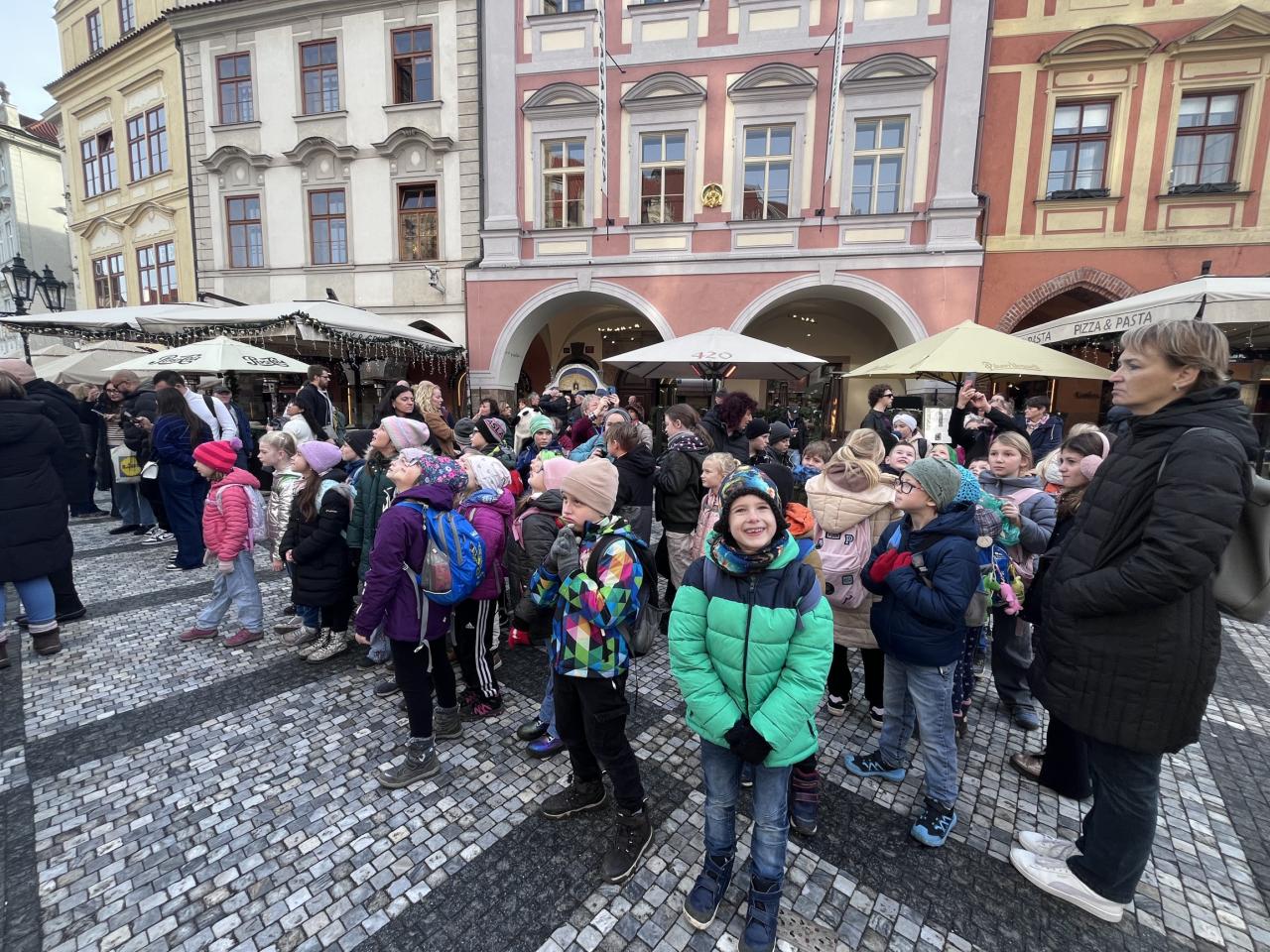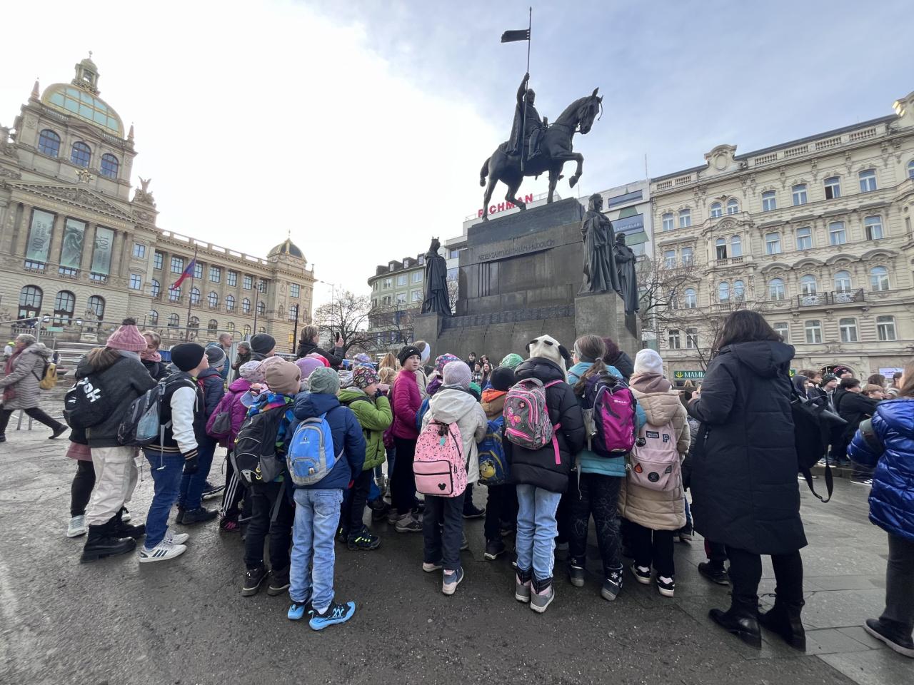 Viděly sochu svatého Václava, prošly Václavským náměstím a zastavily se na Havelských trzích, kde si mohly něco koupit. Následovala návštěva Staroměstského orloje, Karlova mostu a na závěr vánočních trhů před Palladiem. Výlet byl náročný, děti byly na konci unavené, ale spokojené – a zaslouží si velkou pochvalu, jak celý den zvládly.