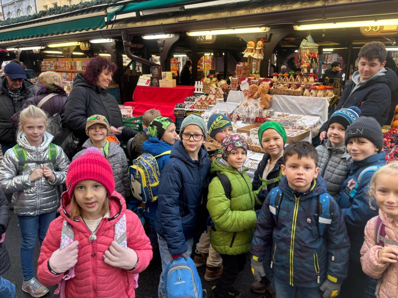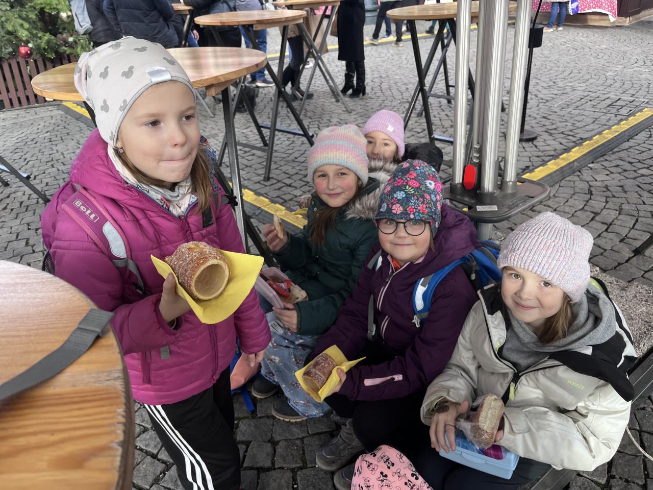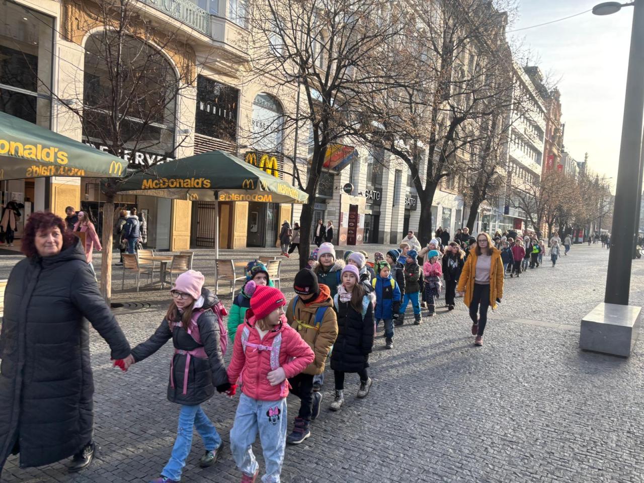 Viděly sochu svatého Václava, prošly Václavským náměstím a zastavily se na Havelských trzích, kde si mohly něco koupit. Následovala návštěva Staroměstského orloje, Karlova mostu a na závěr vánočních trhů před Palladiem. Výlet byl náročný, děti byly na konci unavené, ale spokojené – a zaslouží si velkou pochvalu, jak celý den zvládly.