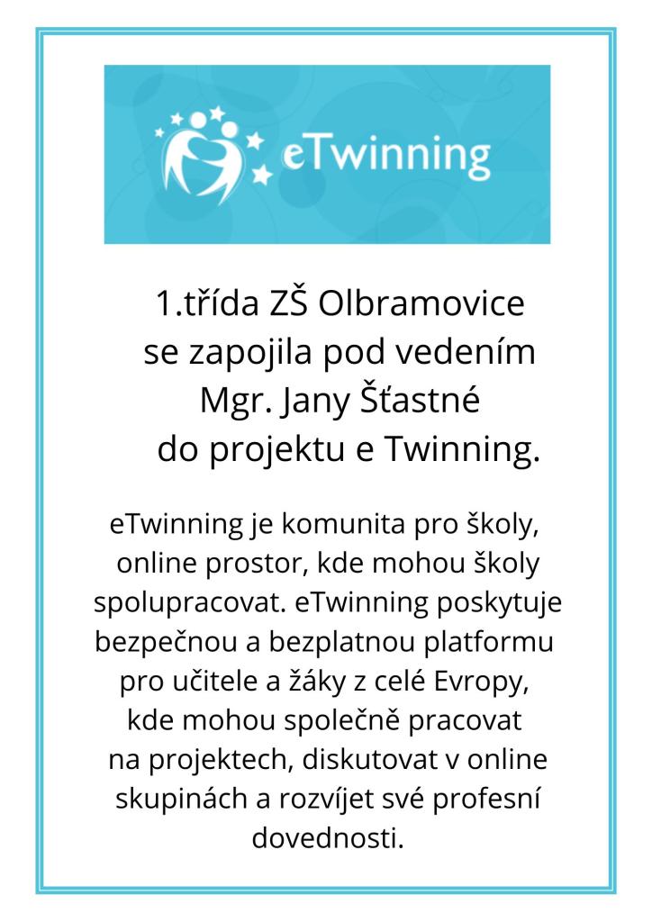 1.třída ZŠ Olbramovice se zapojila pod vedením Mgr. Jany Šťastné do projektu eTwinning.